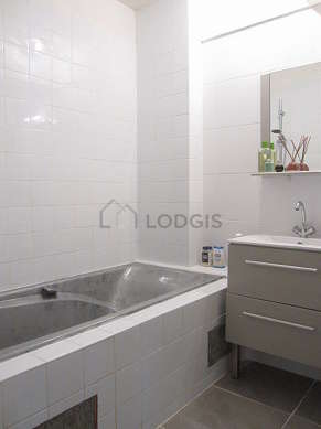 Este apartamento é equipado de uma casa de banho agradável é clara. Esta sala de água dispõe do necessário pelo seu bem estar na sua vida quotidiana : toalhas de banho, armário, banheira, secador. Os WC são separados da casa de banho e situados em uma peça independente.