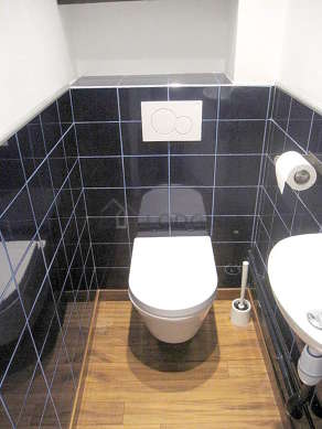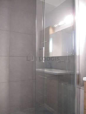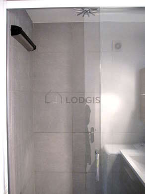 Este apartamento é equipado de uma casa de banho agradável. Esta sala de água dispõe do necessário pelo seu bem estar na sua vida quotidiana : toalhas de banho, armário, ducheiro separado, radiator secador de toalhas. Os WC são separados da casa de banho e situados em uma peça independente.