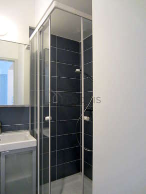 Este apartamento é equipado de uma casa de banho. Esta sala de água dispõe do necessário pelo seu bem estar na sua vida quotidiana : prateleira, armário, ducheiro separado. Os WC são separados da casa de banho e situados em uma peça independente.
