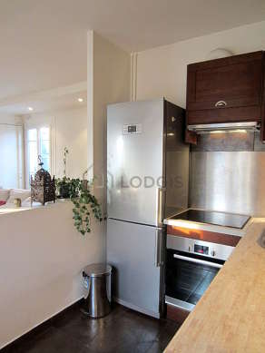 Este apartamento tem uma bonita cozinha com azuleijo no piso e todo o equipamento pela sua vida quotidiana : fogaõ, frigorífico, congelador, forno, microondas, exaustur, torradeira, chaleira, máquina de café, mesa de jantar, prateleira, armário, loiça, 4 cadeira(s).