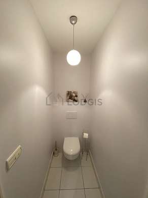 Este apartamento é equipado de uma casa de banho agradável. Esta sala de água dispõe do necessário pelo seu bem estar na sua vida quotidiana : toalhas de banho, prateleira, armário, banheira, radiator secador de toalhas. Os WC são separados da casa de banho e situados em uma peça independente.