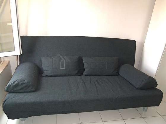 Este apartamento é composto de um salão com azuleijo no piso é janelas vitros duplos é vista sobre rua. Este salão calmo mobiliado et equipado para uma agradável estância : televisaõ, lençois, colchas, mesinha, roupeiro1 sofá-cama.