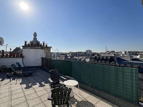 Com pavimento no piso o terraço de este apartamento vai lhe encantá-lo. Este espaço exterior calmo é muito luminoso é equipado de mesa de jantar, 3 cadeira(s), cadeira de escritorio sera uma verdadeira vantagem para sua estância em Paris, sobretudo os dias de sol.