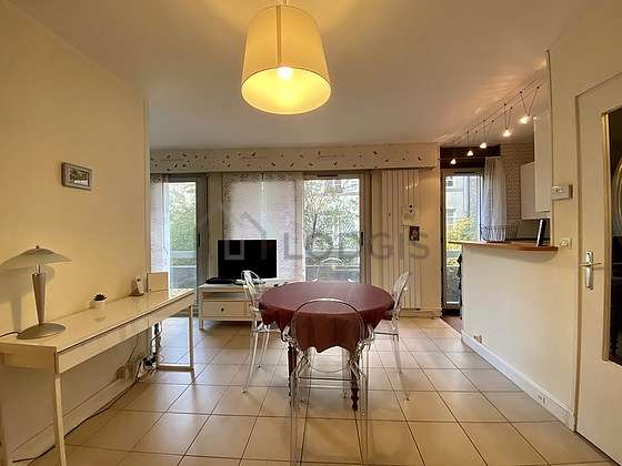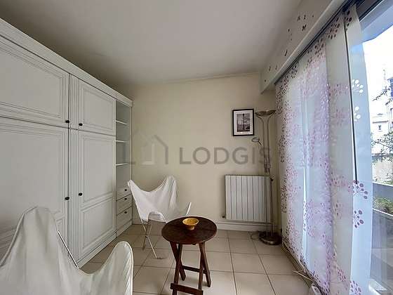 Este apartamento é composto de um charmoso salão com azuleijo no piso é janelas vitros duplos é vista sobre jardim. Este salão calmo mobiliado et equipado para uma agradável estância : televisaõ, sofá, mesa de jantar, mesinha, armário, 4 cadeira(s)2 cama embutida.