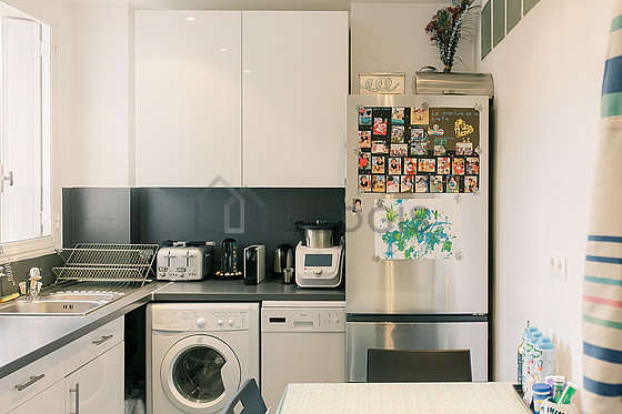 A fim de partilhar suas refeições no ambiente de convivialidade durante sua estância em Paris, este apartamento dispõe de uma agradável sala de jantar que pode acolher até 4 convivas graças a mesa de jantar, roupeiro, armário, 5 cadeira(s).