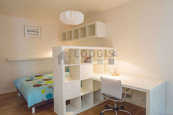 Com parqué no piso é janelas vitros duplos é vista sobre pátio, este quarto atraente oferece o equipamento necessário para descansar durante sua estância : lençois, colchas, secretária, roupeiro, prateleira, armário, 1 cadeira(s)1 cama.