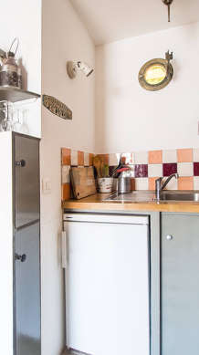 Este apartamento é equipado de uma casa de banho agradável. Esta sala de água dispõe do necessário pelo seu bem estar na sua vida quotidiana : toalhas de banho, prateleira, armário, ducheiro separado, sink, mirror, coat stand, bin, radiator secador de toalhas. Os WC são integrados na casa de banho.
