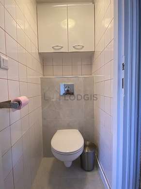 Este apartamento é equipado de uma casa de banho agradável. Esta sala de água dispõe do necessário pelo seu bem estar na sua vida quotidiana : toalhas de banho, armário, banheira, secador. Os WC são separados da casa de banho e situados em uma peça independente.
