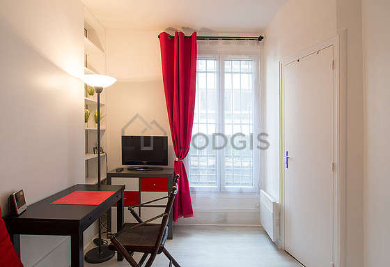 Este apartamento é composto de um atraente salão com linoleo no piso é janelas vitros duplos é vista sobre pátio. Este salão calmo mobiliado et equipado para uma agradável estância : televisaõ, lençois, colchas, mesa de jantar, mesinha, roupeiro, prateleira1 sofá-cama.