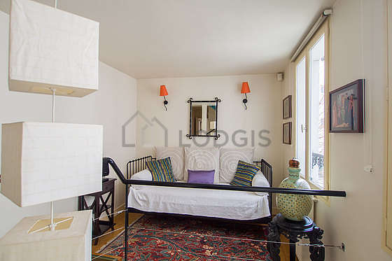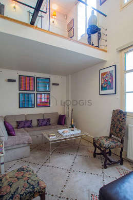 Este triplex é composto de um soberbo salão com parqué no piso é janelas vitros duplos é vista sobre pátio. Este salão very quiet mobiliado et equipado para uma agradável estância : sofá, prateleira.