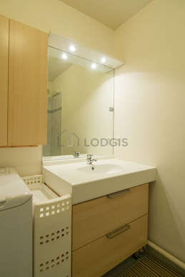 Este apartamento é equipado de uma casa de banho agradável. Esta sala de água dispõe do necessário pelo seu bem estar na sua vida quotidiana : armário, banheira, radiator secador de toalhas. Os WC são separados da casa de banho e situados em uma peça independente.