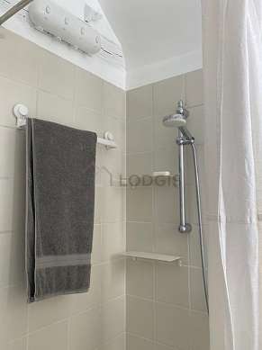 Este apartamento é equipado de uma casa de banho clara with janelas vitros duplos. Esta sala de água dispõe do necessário pelo seu bem estar na sua vida quotidiana : toalhas de banho, prateleira, ducheiro separado, secador. Os WC são separados da casa de banho e situados em uma peça independente.
