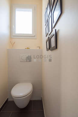 Este apartamento é equipado de uma casa de banho agradável with janelas vitros duplos. Esta sala de água dispõe do necessário pelo seu bem estar na sua vida quotidiana : toalhas de banho, armário, banheira, radiator secador de toalhas. Os WC são separados da casa de banho e situados em uma peça independente.
