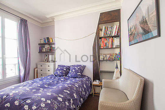 Com parqué no piso é janelas vitros duplos é vista sobre rua, este quarto atraente oferece o equipamento necessário para descansar durante sua estância : lençois, colchas, sofá, roupeiro, biblioteca, armário1 cama.