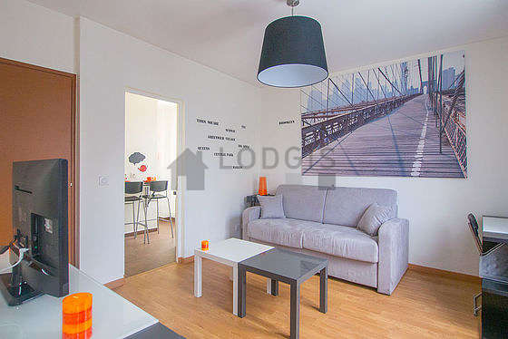 De um charmoso salão com parqué no piso é janelas vitros duplos é vista sobre pátio. Este salão calmo mobiliado et equipado para uma agradável estância : televisaõ, lençois, colchas, mesinha, secretária, roupeiro, prateleira, 1 cadeira(s)1 sofá-cama.