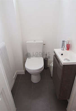 De uma casa de banho agradável é clara with janelas. Esta sala de água dispõe do necessário pelo seu bem estar na sua vida quotidiana : toalhas de banho, armário, banheira, secador, radiator secador de toalhas. Os WC são integrados na casa de banho.