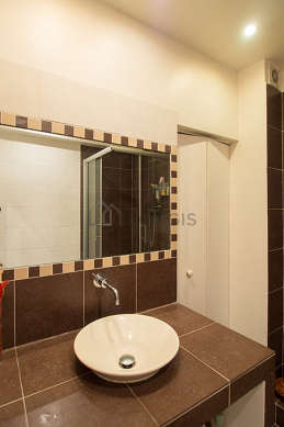 Este apartamento é equipado de uma casa de banho agradável é clara. Esta sala de água dispõe do necessário pelo seu bem estar na sua vida quotidiana : toalhas de banho, armário, ducheiro separado. Os WC são separados da casa de banho e situados em uma peça independente.