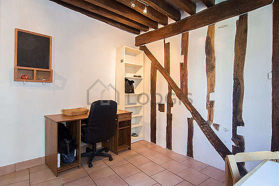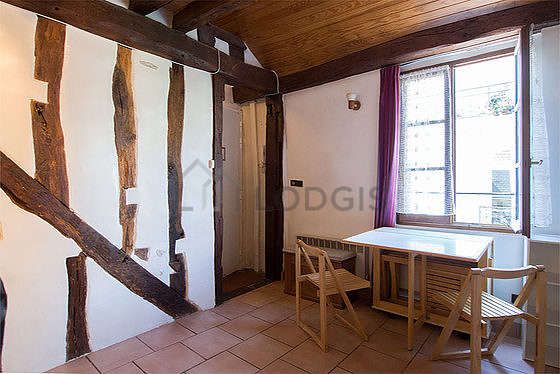 Este apartamento é composto de um salão com azuleijo no piso é janelas é vista sobre rua. Este salão calmo mobiliado et equipado para uma agradável estância : 1 poltrona(s), mesa de jantar, secretária, roupeiro, prateleira, armário, 4 cadeira(s).