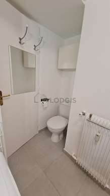 Este apartamento é equipado de uma casa de banho. Esta sala de água dispõe do necessário pelo seu bem estar na sua vida quotidiana : toalhas de banho, prateleira, armário, banheira. Os WC são integrados na casa de banho.