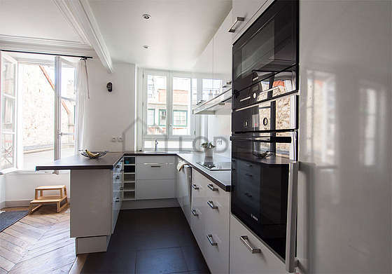 Vista sobre pátio, o terraço exposto a sul-oeste de este apartamento vai lhe seduzi-lo. Este espaço exterior calmo é muito luminoso é equipado de mesa de jantar, 4 cadeira(s) permitindo-lhe aproveitar plenamente de sua estância em Paris, sobretudo os dias de sol.
