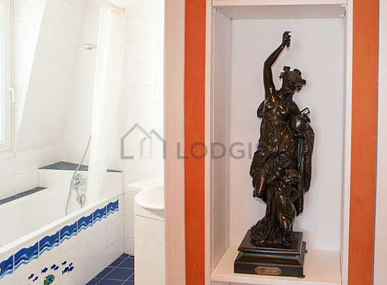 Este apartamento é equipado de uma casa de banho magnífico é muito clara with janelas vitros duplos. Esta sala de água dispõe do necessário pelo seu bem estar na sua vida quotidiana : toalhas de banho, armário, banheira, secador, radiator secador de toalhas. Os WC são integrados na casa de banho.