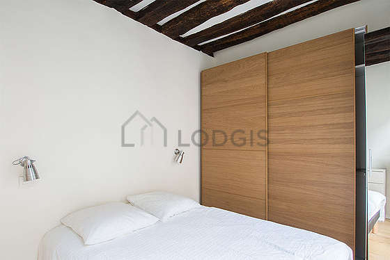 Com parqué no piso é janelas vitros duplos é vista sobre rua, este quarto atraente oferece o equipamento necessário para descansar durante sua estância : lençois, colchas, roupeiro, prateleira, comoda, armário1 cama.