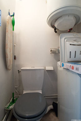 Este apartamento é equipado de uma casa de banho. Esta sala de água dispõe do necessário pelo seu bem estar na sua vida quotidiana : toalhas de banho, ducheiro separado, secador. Os WC são separados da casa de banho e situados em uma peça independente.
