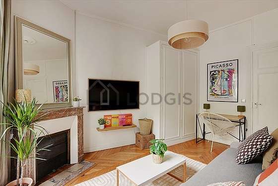 Este apartamento é composto de um charmoso salão com parqué no piso é janelas vitros duplos é vista sobre rua. Este salão calmo mobiliado et equipado para uma agradável estância : televisaõ, lençois, colchas, mesinha, roupeiro, prateleira, guarda-roupa1 sofá-cama.