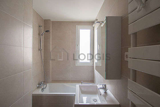 Este apartamento é equipado de uma casa de banho agradável é clara with janelas vitros duplos. Esta sala de água dispõe do necessário pelo seu bem estar na sua vida quotidiana : toalhas de banho, prateleira, armário, banheira, secador, radiator secador de toalhas. Os WC são separados da casa de banho e situados em uma peça independente.