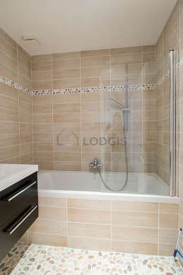 Este apartamento é equipado de uma casa de banho. Esta sala de água dispõe do necessário pelo seu bem estar na sua vida quotidiana : toalhas de banho, banheira. Os WC são separados da casa de banho e situados em uma peça independente.