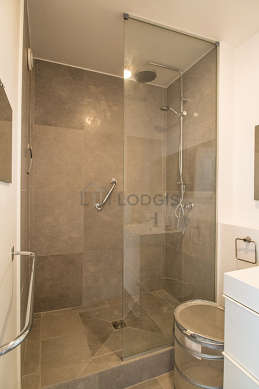 Este apartamento é equipado de uma casa de banho agradável é clara. Esta sala de água dispõe do necessário pelo seu bem estar na sua vida quotidiana : toalhas de banho, ducheiro separado. Os WC são separados da casa de banho e situados em uma peça independente.
