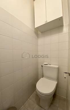 Este apartamento é equipado de uma casa de banho agradável é muito clara. Esta sala de água dispõe do necessário pelo seu bem estar na sua vida quotidiana : toalhas de banho, prateleira, armário, banheira, radiator secador de toalhas. Os WC são separados da casa de banho e situados em uma peça independente.