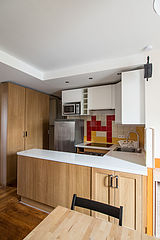 Este apartamento tem uma bonita cozinha com azuleijo no piso e todo o equipamento pela sua vida quotidiana : fogaõ, frigorífico, congelador, forno, microondas, exaustur, roupeiro, armário, loiça.
