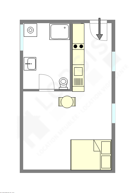 Este apartamento é equipado de uma casa de banho magnífico é clara with janelas vitros duplos. Esta sala de água dispõe do necessário pelo seu bem estar na sua vida quotidiana : toalhas de banho, armário, ducheiro separado, secador, radiator secador de toalhas. Os WC são integrados na casa de banho.