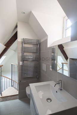 Este apartamento é equipado de uma casa de banho magnífico é clara with janelas vitros duplos. Esta sala de água dispõe do necessário pelo seu bem estar na sua vida quotidiana : toalhas de banho, armário, ducheiro separado. Os WC são integrados na casa de banho.