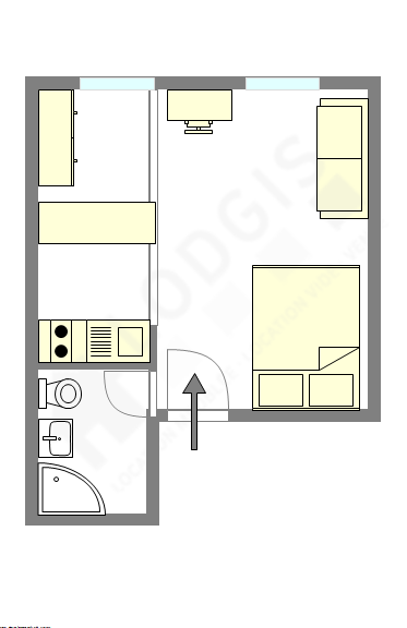 Este apartamento é composto de um salão com parqué no piso é janelas vitros duplos é vista sobre rua. Este salão mobiliado et equipado para uma agradável estância : televisaõ, lençois, colchas, secretária, roupeiro, armário, viga, 1 cadeira(s)1 sofá-cama, 1 cama.