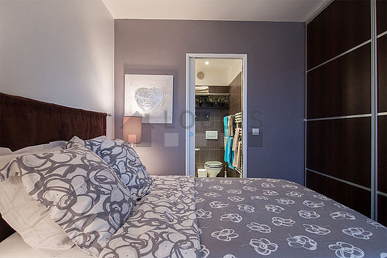 Este apartamento é equipado de uma casa de banho magnífico é clara. Esta sala de água dispõe do necessário pelo seu bem estar na sua vida quotidiana : toalhas de banho, prateleira, armário, ducheiro separado, secador, sink, radiator secador de toalhas. Os WC são integrados na casa de banho.