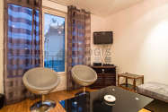 Este apartamento é composto de um atraente salão com parqué no piso é janelas vitros duplos é vista sobre jardim. Este salão calmo mobiliado et equipado para uma agradável estância : televisaõ, lençois, 2 poltrona(s), mesinha, roupeiro, armário1 sofá-cama.