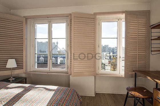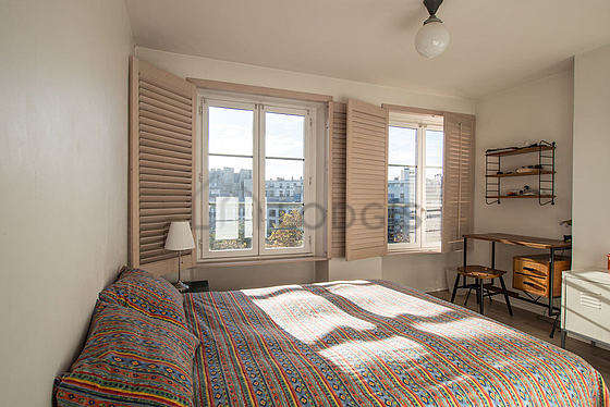 Com parqué no piso é janelas vitros duplos é vista sobre rua, este quarto atraente oferece o equipamento necessário para descansar durante sua estância : lençois, colchas, secretária, prateleira, comoda, banco, mesinha de cabeceira1 cama.