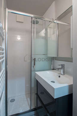 Este apartamento é equipado de uma casa de banho. Esta sala de água dispõe do necessário pelo seu bem estar na sua vida quotidiana : toalhas de banho, prateleira, armário, ducheiro separado, secador, sink, radiator secador de toalhas. Os WC são separados da casa de banho e situados em uma peça independente.