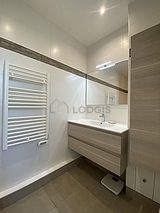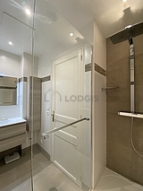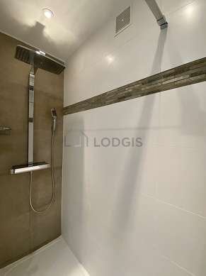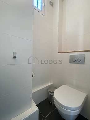 Este apartamento é equipado de uma casa de banho agradável. Esta sala de água dispõe do necessário pelo seu bem estar na sua vida quotidiana : toalhas de banho, armário, ducheiro separado, secador, radiator secador de toalhas. Os WC são separados da casa de banho e situados em uma peça independente.