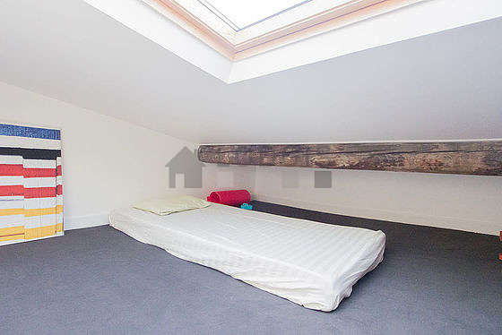 Graças a sua altura de teto, um bonita mezanino foi possível de ser instalado em este apartamento , oferecendo-lhe uma verdadeira peça suplementar equipada de lençois, colchas, viga.