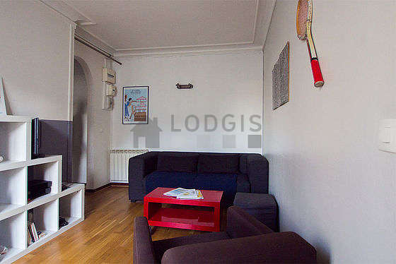 Este apartamento é composto de um atraente salão com parqué no piso é janelas vitros duplos é vista sobre pátio. Este salão very quiet mobiliado et equipado para uma agradável estância : televisaõ, sofá, 1 poltrona(s), prateleira, 2 cadeira(s), bar.