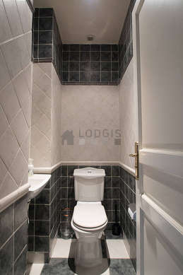 Este apartamento é equipado de uma casa de banho magnífico é clara with janelas. Esta sala de água dispõe do necessário pelo seu bem estar na sua vida quotidiana : toalhas de banho, armário, banheira, radiator secador de toalhas. Os WC são separados da casa de banho e situados em uma peça independente.