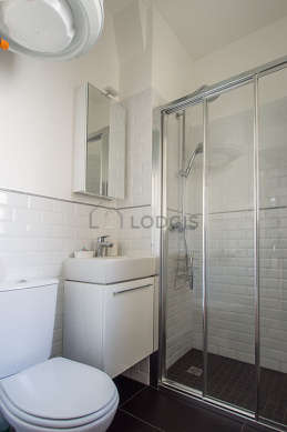 Este apartamento é equipado de uma casa de banho agradável é clara with janelas. Esta sala de água dispõe do necessário pelo seu bem estar na sua vida quotidiana : toalhas de banho, armário, ducheiro separado, sink, radiator secador de toalhas. Os WC são integrados na casa de banho.