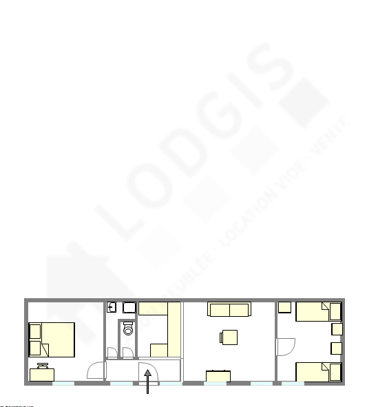 Este apartamento é equipado de uma casa de banho agradável é clara with janelas. Esta sala de água dispõe do necessário pelo seu bem estar na sua vida quotidiana : armário, ducheiro separado, radiator secador de toalhas. Os WC são separados da casa de banho e situados em uma peça independente.