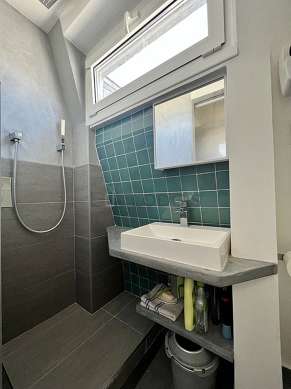 Este apartamento é equipado de uma casa de banho magnífico é muito clara with janelas vitros duplos. Esta sala de água dispõe do necessário pelo seu bem estar na sua vida quotidiana : toalhas de banho, prateleira, armário, ducheiro separado, secador. Os WC são integrados na casa de banho.