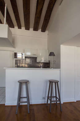 Graças a sua altura de teto, um mezanino foi possível de ser instalado em este apartamento , oferecendo-lhe uma verdadeira peça suplementar equipada de viga.