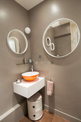 Graças a sua altura de teto, um bonita mezanino foi possível de ser instalado em este apartamento , oferecendo-lhe uma verdadeira peça suplementar equipada de lençois, colchas, roupeiro, armário.