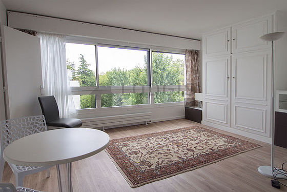 Este apartamento é composto de um soberbo salão com parqué no piso é janelas vitros duplos é vista sobre jardim. Este salão very quiet mobiliado et equipado para uma agradável estância : televisaõ, lençois, colchas, sofá, mesa de jantar, mesinha, prateleira, armário, 3 cadeira(s)1 cama.